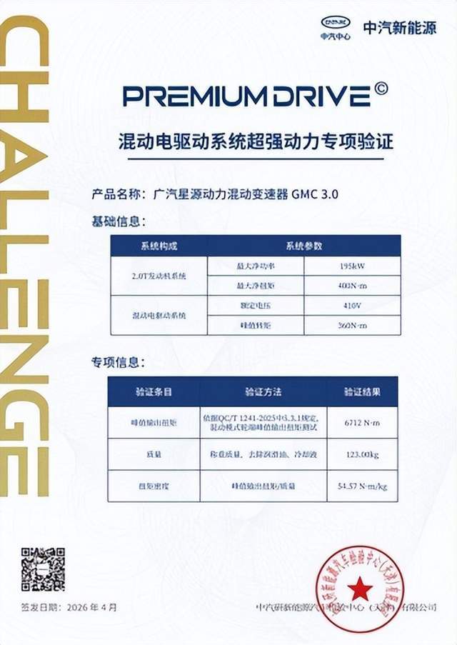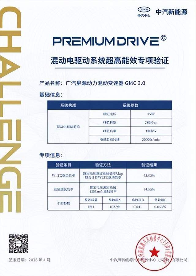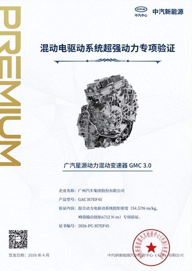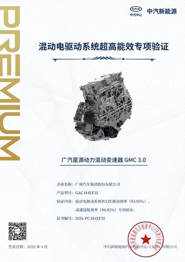 GMC 3.0混动变速器疾风版为国内首个重量低于100kg的轻量化DHT,整机仅重98.5kg,WLTC工况驱动效率达93%,最高传动效率98.7%,电控效率更以99.2%提前达成《节能与新能源汽车技术路线图》设定的2035年目标。配合广汽自研AI能量控制平台,系统可实时判断路况与驾驶习惯,自动切换最优能源模式,让搭载该系统的B级MPV油耗迈入3升时代,A级轿车油耗迈入2升时代。