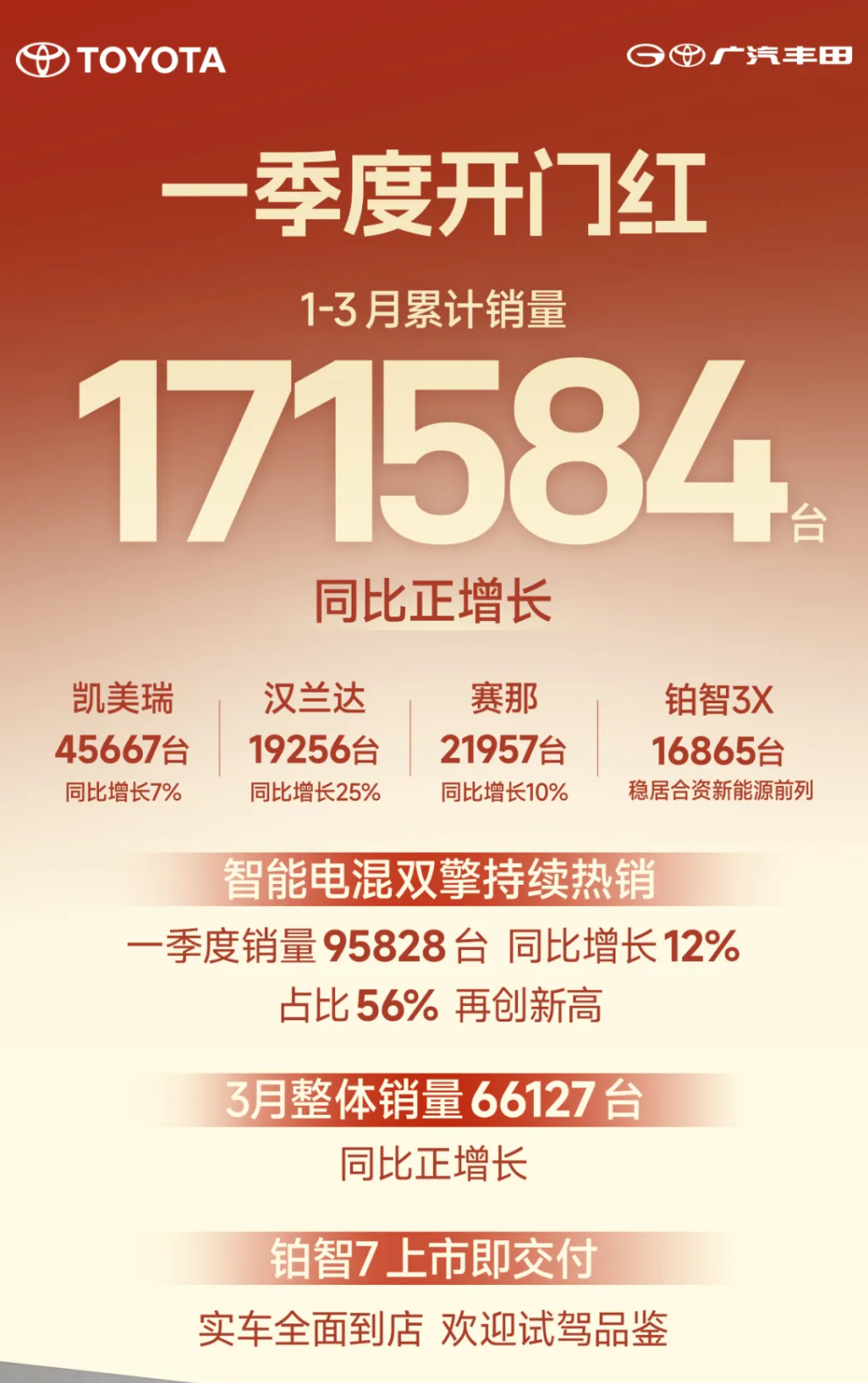 3月29日,广汽丰田铂智7正式上市,官方指导价16.98万-22.98万元——这款车被看作铂智3X之后的“全村希望”,价格杀疯。据说25天预售期里拿下了1万张订单;价格发布后,又拿下了3000+大定。