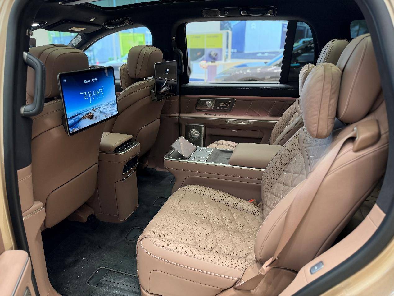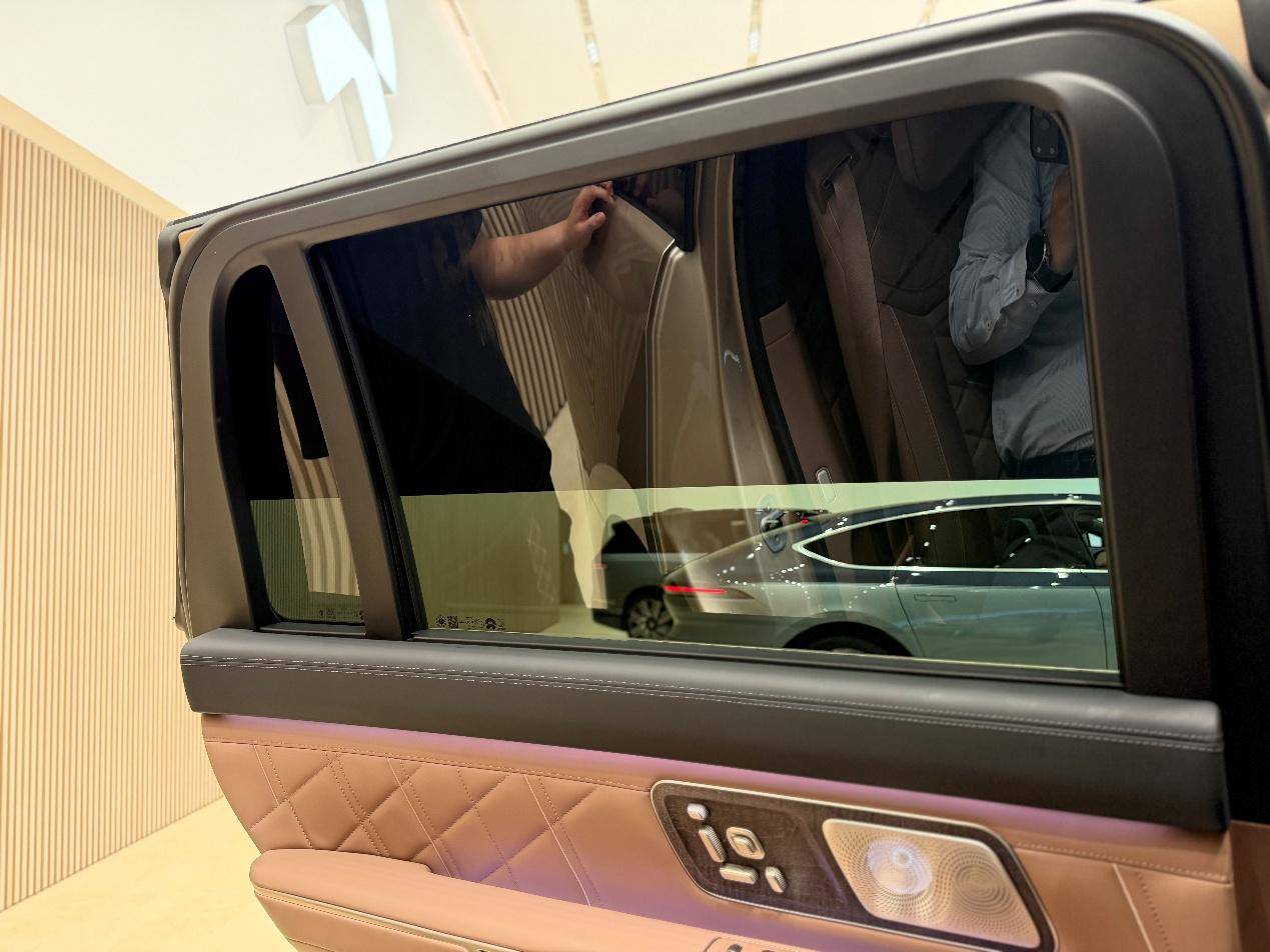 重点说大家最关心的空间与舒适度,蔚来ES9是六座布局,首批交付中岛版,二排空间堪比MPV,双小桌板可悬停、可拓展,能放水杯、化妆,甚至临时办公;双保险柜+隐私玻璃+物理遮阳帘,商务私密性和高级氛围感拉满;