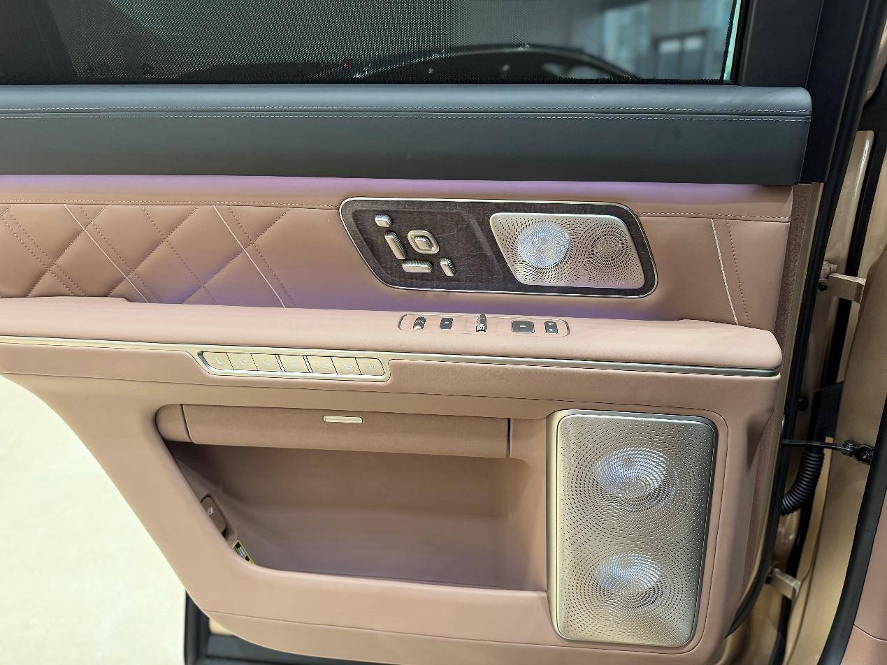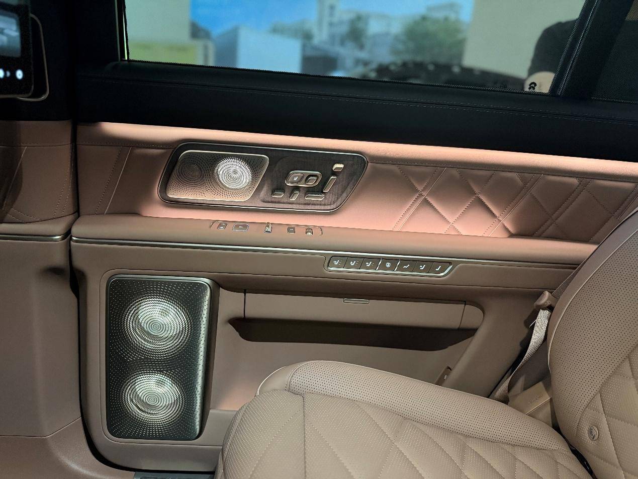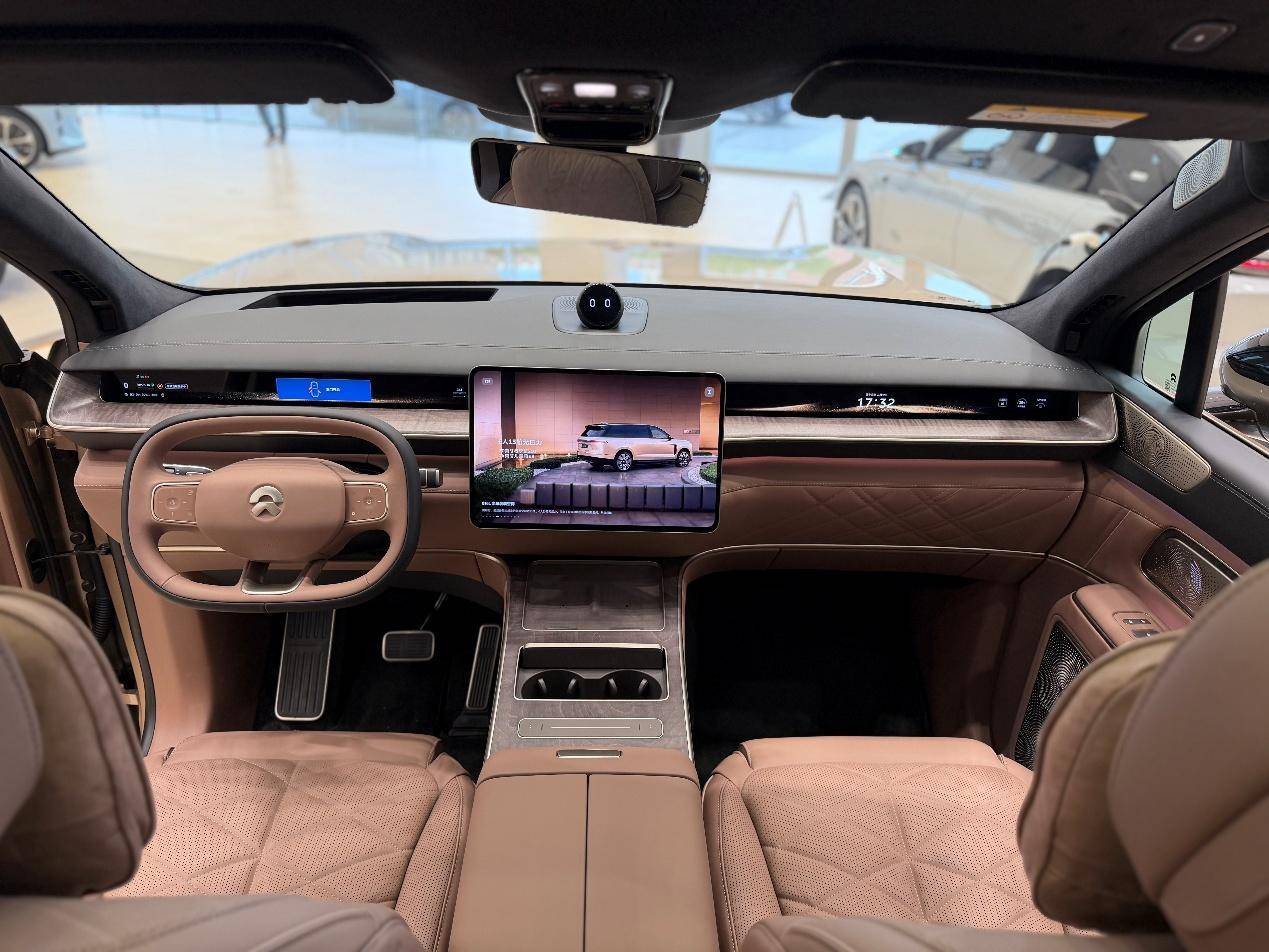 蔚来ES9的车内是ET9与ES8的结合体又做了创新:中控、天幕、天行底盘、线控转向看齐蔚来ET9;LED屏、门板按键延续ES8风格,兼顾科技与实用性,车内47扬声器钻石发光音响,1.3克拉钻石单元,音质与氛围感很强。
