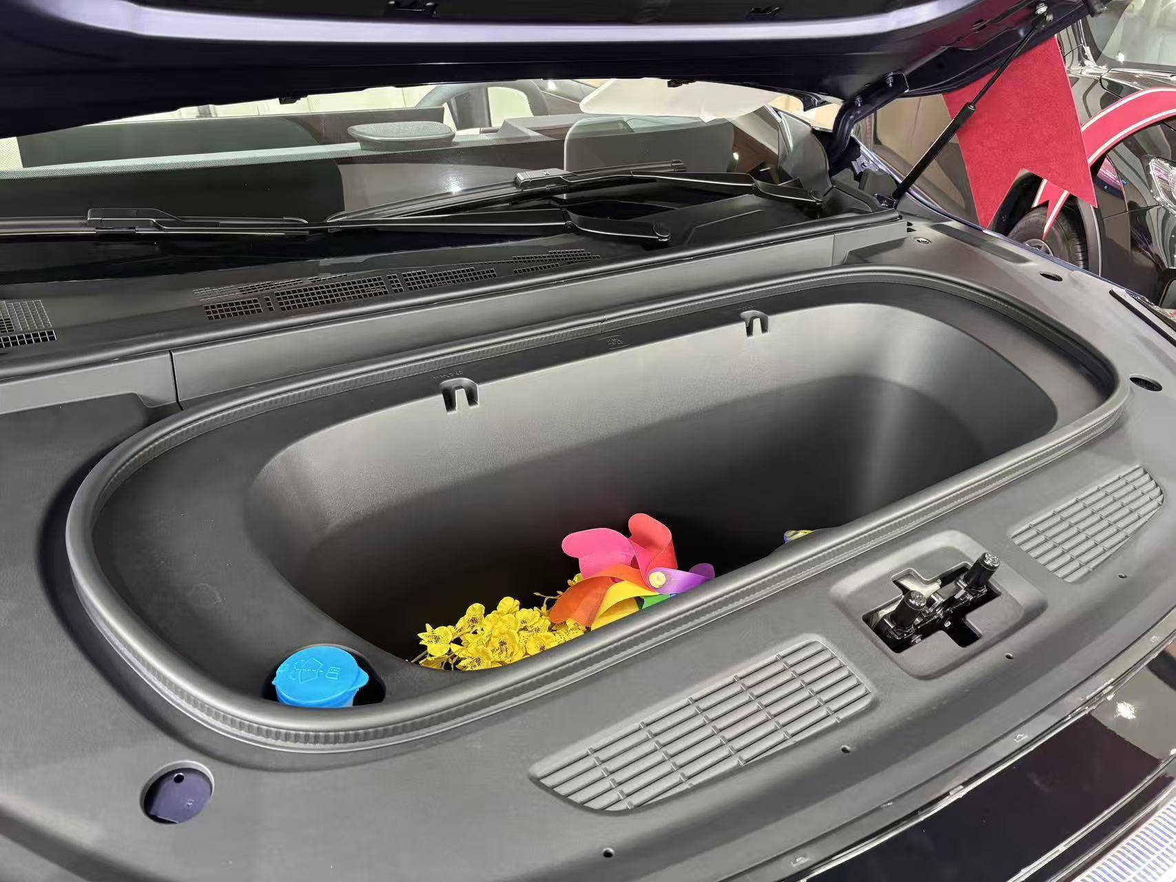 另外,新车的后备厢空间也很大,下部还有一个非常大的空间,放个小的行李厢都够。新车还有前备厢,整体面积不大,好在够深,平常满载时候前面可以放书包之类的东西。当然它也有不足,那就是它的位置太靠后了,加之又深,对于一些个子较矮的朋友来说有点不方便拿。