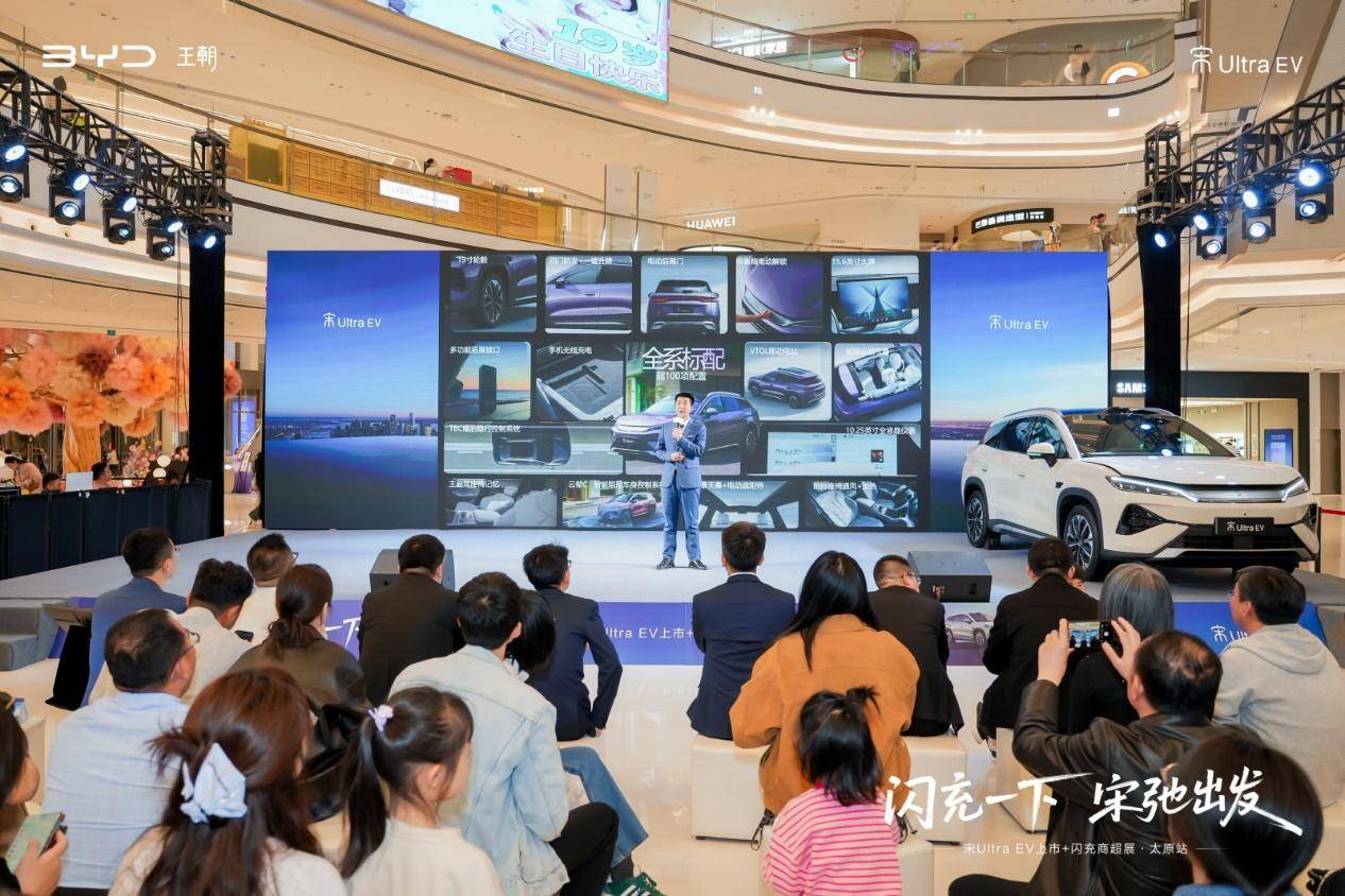 4月的龙城太原,春潮涌动,一场关于出行变革的盛宴在吾悦广场拉开帷幕——以“闪充一下 宋弛出发”为主题的比亚迪宋Ultra EV太原上市发布会盛大启幕。这款定位B级纯电SUV的重磅车型,携第二代刀片电池、10C闪充技术、越级空间与智能生态重磅登场,以15.19万-17.99万元的诚意定价,为太原乃至山西市场带来了一场兼具技术深度与生活温度的出行革命 。