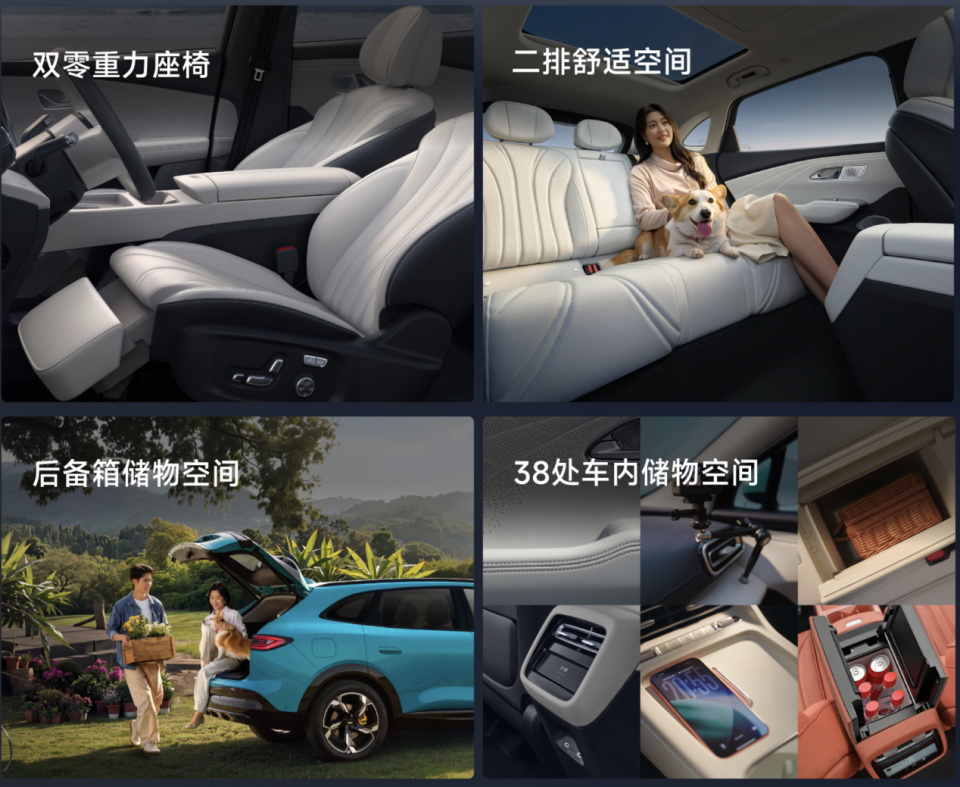 家庭日常出行人数大多在1-4人之间,六座、七座车型的第三排多数处于备而不用的状态,反而挤占了后排乘坐舒适度与后备箱装载能力。风云T9L主动舍弃这类伪需求,把空间资源给到了前后排核心座位与储物区域,后备箱储物空间为573/1597L(二排放倒),50L后备箱下沉空间,婴儿车、露营装备都能从容收纳。这种不堆数量、只做精准取舍的思路,在当下的市场里显得尤为清醒。