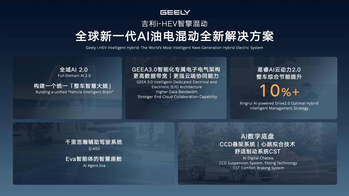 4月13日,吉利正式推出全新i-HEV智擎混动技术,这套AI油电混动方案一亮相就刷新多项行业纪录,还做到发布即量产,很快就能让普通消费者开上。和传统混动比起来,它在智能、省油、动力、安全、耐用这五个方面都做到了全面升级,直接把油电混动的体验拉到新高度。