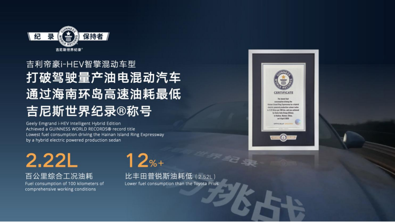 极致的节能表现,是吉利i-HEV智擎混动最直观的实力证明,也是它碾压行业标杆的核心底气。很多人选混动,首要需求就是省油,吉利没有盲目堆砌技术,而是从能量利用的根源入手,打造“焦耳工程”节能体系,把每一滴燃油的效率压榨到极致。其搭载的混动专用发动机,通过驭风火龙卷燃烧技术、镜面工程减摩设计等一系列硬核创新,实现了48.41%的量产最高热效率,拿到中汽中心权威认证,直接登顶全球第一。