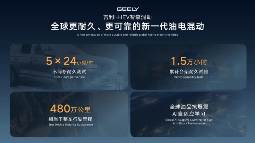同时,这套技术经过全球最严苛的极限验证,累计台架耐久试验相当于行驶480万公里,跨越近100℃温差、高海拔交变等多种极端环境,顺利通过多项权威可靠性认证;哪怕在全球不同地区、不同油品、不同路况下,都能稳定可靠运行,彻底打消消费者对混动车型耐用性的顾虑。