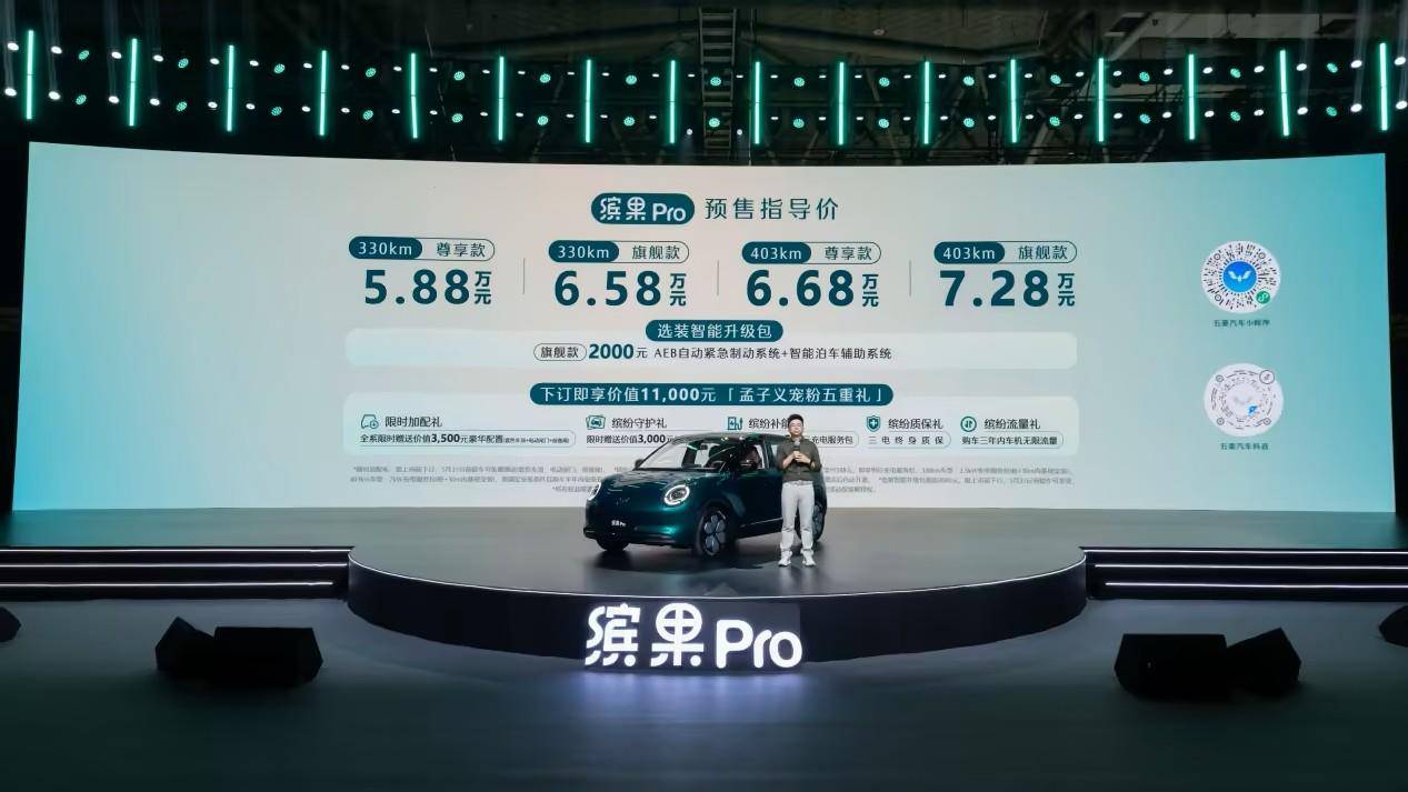 4月14日,上汽通用五菱正式宣布旗下全新纯电小车——缤果Pro开启预售。新车定位“精致缤纷座驾”,共推出四款配置车型,预售价格区间为5.88万元至7.28万元。具体版本与预售价为:330km 尊享款 5.88万元、330km 旗舰款 6.58万元、403km 尊享款 6.68万元、403km 旗舰款 7.28万元。即日起至正式上市前下订的用户,可享官方宣称价值11,000元的“孟子义宠粉五重礼”预售权益。新车预计将于近期正式上市。