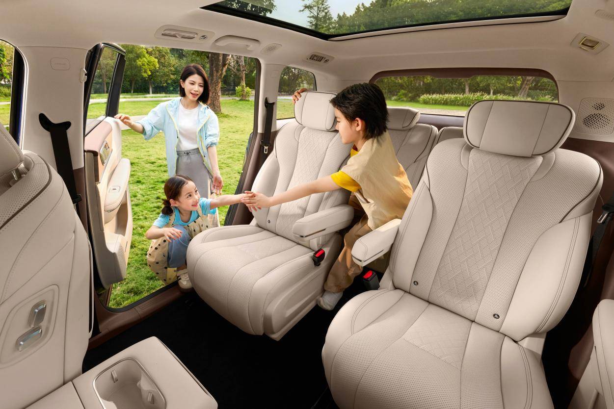 星光L更懂「上有老下有小」的乘坐需求,打造「全龄段友好空间」。其同级最大的0.93㎡后排门洞面积和1.13米后排门洞高度,长辈上下车无需弯腰低头。1.24m车内层高,孩子可站立玩耍;二三排纯平地板及190mm二排宽过道,乘员进出第三排轻松自如;二排座椅移至最后还可变成0.68㎡儿童娱乐空间。同时,星光L拥有1.09㎡全景天窗,以及0.14㎡超大「三排舷窗」,全车透光面积达到3.67㎡,营造视觉通透的“全景阳光房”——孩子看风景不憋闷,老人休息更舒心。
