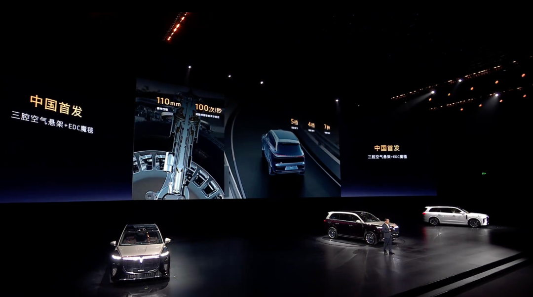 但如果你最近常看新车发布会,就会发现除了普通的空气悬架外,“双腔空悬”,甚至“三腔空悬”这个概念被频繁地提及,已然有越来越卷的趋势。