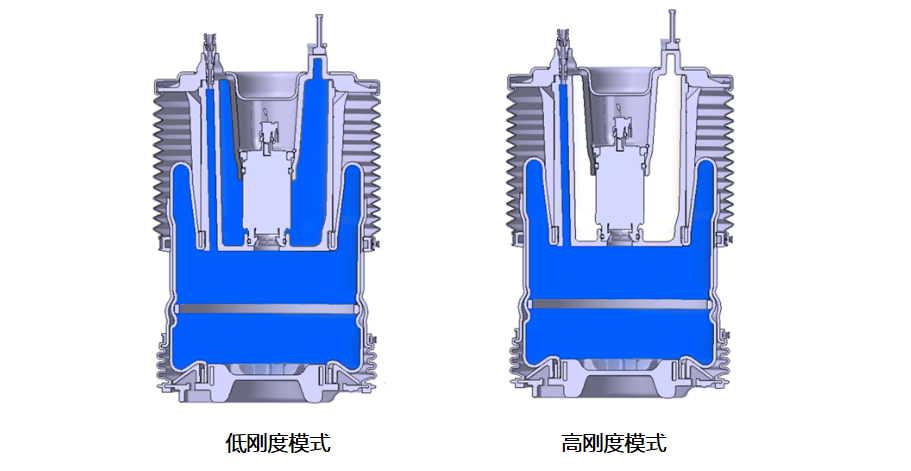 至此,空气弹簧自身拥有了刚度调节能力。