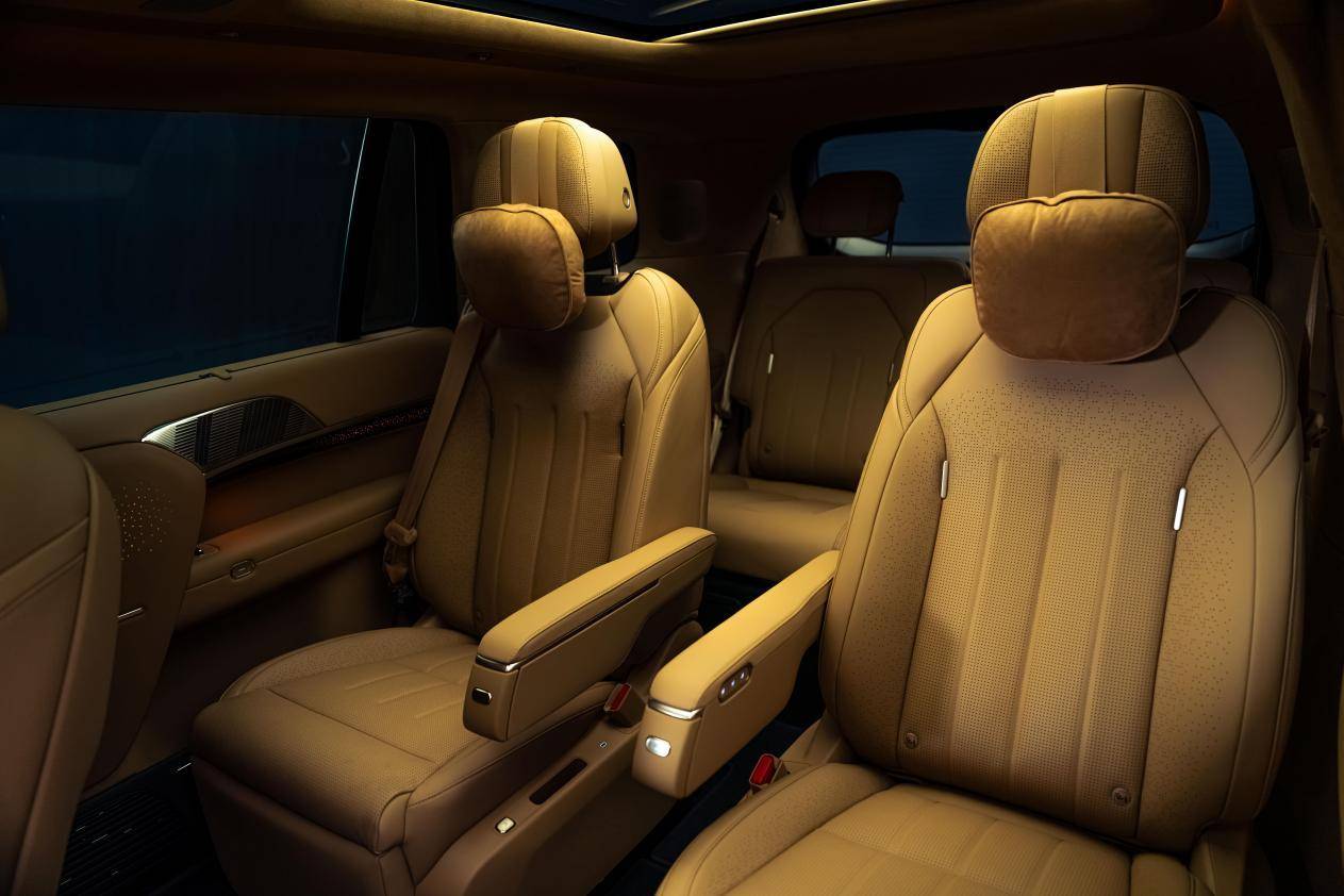 外观设计走大气优雅路线,游艇式车身、贯穿式寰宇天地灯、22英寸悬浮轮毂,气场十足。0.255Cd的风阻系数在全尺寸SUV里很优秀,既有颜值又能省电。外观有珠峰白、峡湾灰等 5 种颜色,内饰有拂晓白、林雾紫等3种选择,哑光车漆质感拉满,适合追求格调的家庭。