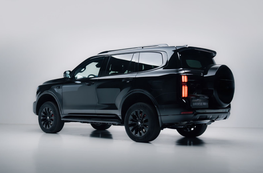 从外观上看,全新坦克500黑武士承袭了东方千年审美底蕴,将黑色所承载的刚毅坚韧的风骨与内敛藏锋的处世智慧完美融合。从车头到车尾实现全维度黑化升级,黑色灯组采用原厂大灯内部黑化工艺,既保留了出色通透的照明效果,又营造出深邃凌厉的战斗气息;黑色中网以大面积黑化设计拉宽车身视觉宽度,释放出霸道气场。黑色轮毂搭配红色卡钳,形成强烈视觉反差,为整车注入满格运动张力;黑色的行李架、侧踏以及整车全黑外观饰条,精准勾勒车身轮廓,将潮酷质感拉满,在硬派底色之上再添精致格调。