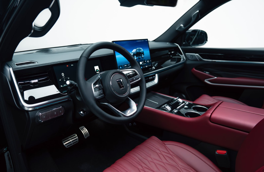 内饰方面,早在新车筹备之初,网上便有大量坦克粉丝借助AIGC以坦克500为原型描绘心中的Dream Car,并热切喊话官方为坦克500黑武士版搭配红色内饰。坦克品牌深度聆听用户心声,不仅将红色内饰方案正式纳入量产,更邀请网友共创命名,最终“骏马红”这一兼具东方意蕴与奋进精神的名字脱颖而出,被官方正式采纳。新车内饰基于“黑甲赤韵”的设计巧思,采用定制深红色调的Nappa真皮座椅搭配菱格绗缝工艺,与全黑顶棚形成层次分明的视觉反差,在拉满豪华格调的也为马年征程注入“红”运当头的美好寓意。
