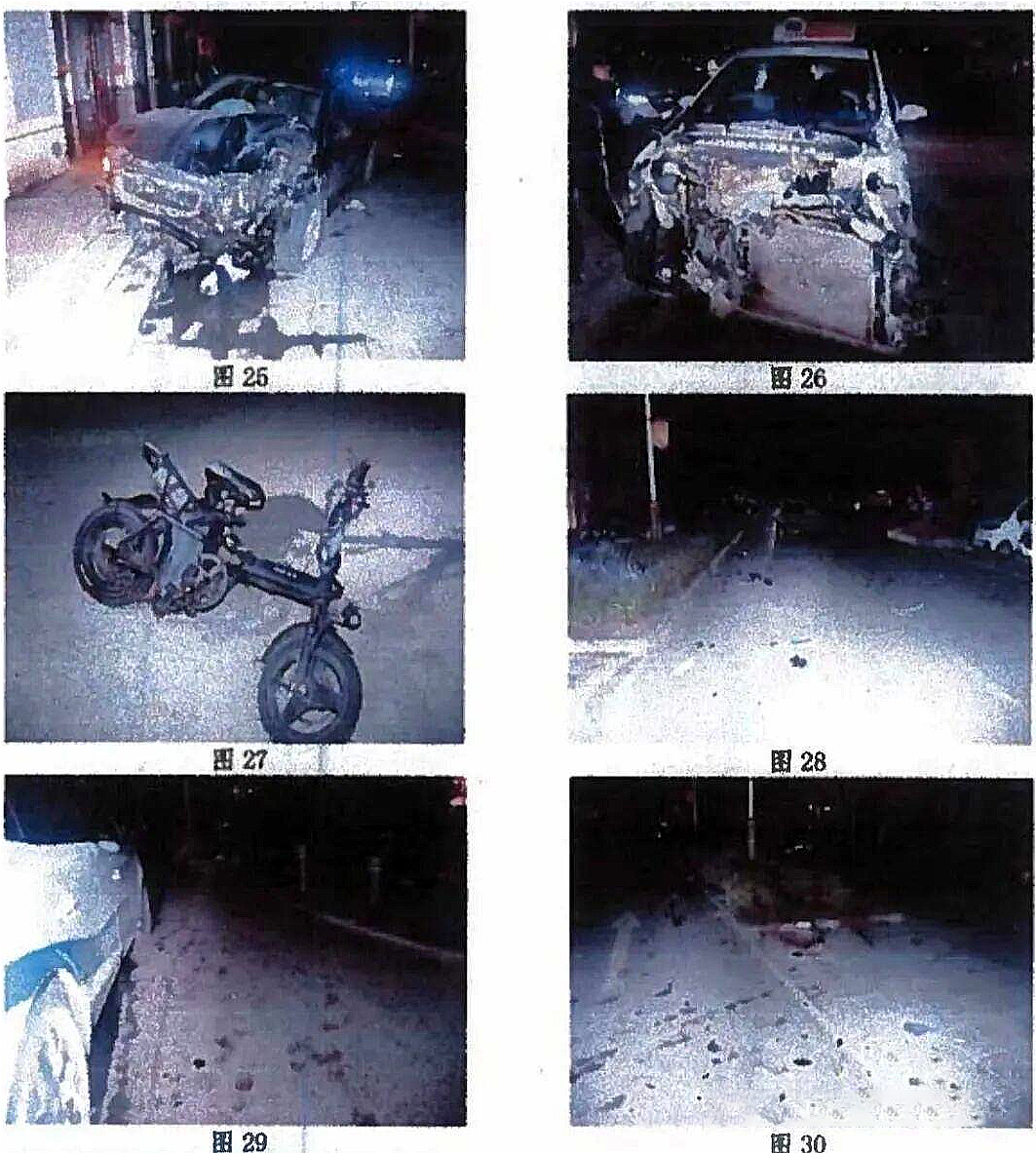 后段某驾车行驶至美食街东段和南北向得到通榆县开发区幼儿园西侧道路较差的十字路口,向东直行时,与一辆向东南转弯的出租车相撞;碰撞时间为凌晨1时46分28秒;两车碰撞之后,段某得车辆又与路边骑电动车的杨某相撞;凌晨1时36分33秒时,警车出现在事发的十字路口。