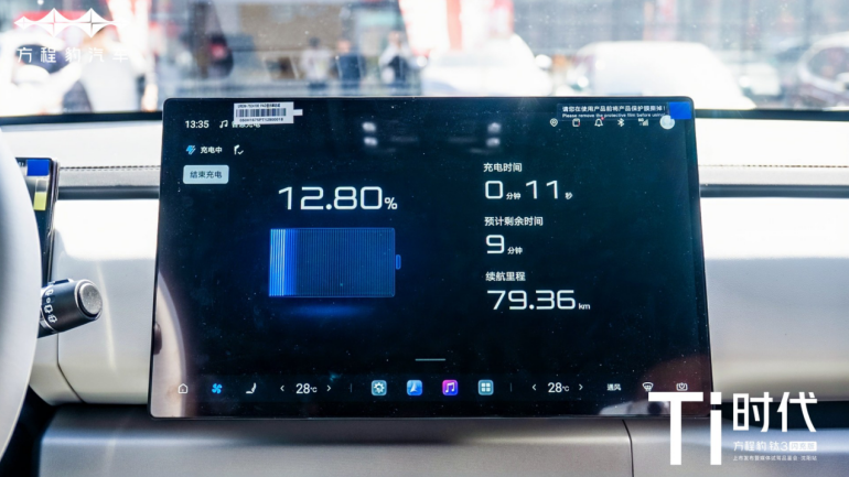 首先是两大性能黑科技,一个是比亚迪闪充技术及二代刀片电池,在常温环境下,钛3闪充版充电10-70%只需约5分钟,10-97%只需约9分钟,在零下30度的低温环境中也只多了3分钟,“5分好9分饱3分寒”让用户再无充电焦虑。