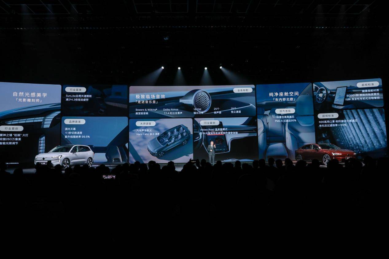 沃尔沃将斯堪的纳维亚设计与现代科技融合,为用户带来沉浸式豪华体验与无焦虑驾控感受。EX90与ES90搭载宝华韦健旗舰音响,1610W功率、25扬声器打造7.1.4杜比全景声,全球首搭AbbeyRoad录音室模式,全座皆是“皇帝位”。标配调光天幕,紫外线隔绝率99.5%,透光不透热;Sunlike太阳光谱技术还原自然光,缓解驾驶疲劳;360°声学夹层玻璃与全方位声学包裹,打造静谧座舱。