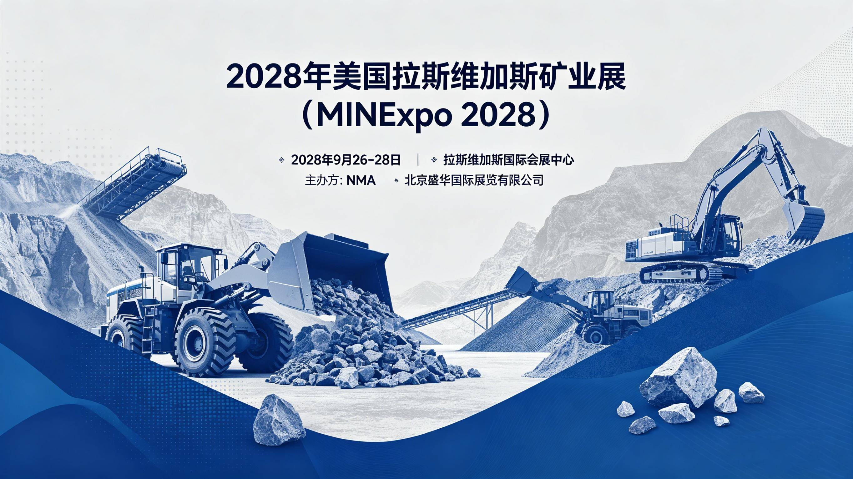当全球矿业目光汇聚北美大陆,一场引领行业变革、汇聚无限商机的顶级盛会正呼之欲出!2028 年 9 月 26 - 28 日,备受全球矿业界瞩目的美国拉斯维加斯矿业展(MINExpo)将在拉斯维加斯会展中心盛大启幕。作为全球规模最大、影响力最广的专业矿业展会之一,本届展会由国际顶尖展览机构精心策划主办,中国区组团单位北京盛华国际展览有限公司全力协助,以“探索矿业新边界,共筑全球合作梦”为核心主题,为全球矿业企业与专业人士搭建起一座跨越国界、高效沟通的顶级桥梁。