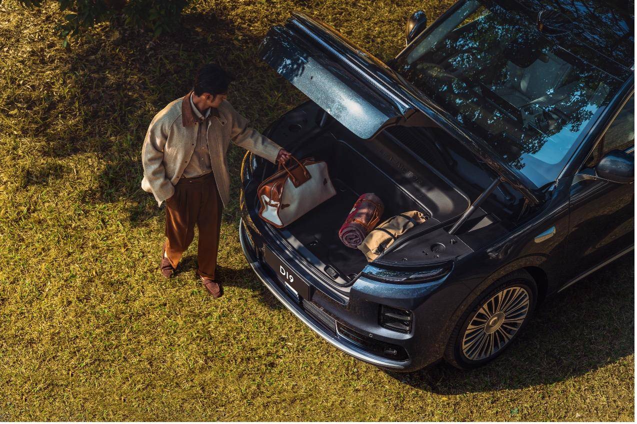 全车拥有至高50处储物空间,分类清晰、触手可及,让每一件物品皆有所归。值得一提的是,D19纯电版配备L型低开口超宽电动前备舱,拥有176L超大储物空间,支持电动开合、220V电源插座、防泼水可冲洗、百变组合拓展(如厨房场景)等功能。后备厢常规容积达337L,七座版二三排座椅放倒后可扩展至2667L。灵活组合,满足全家出行全场景需求。