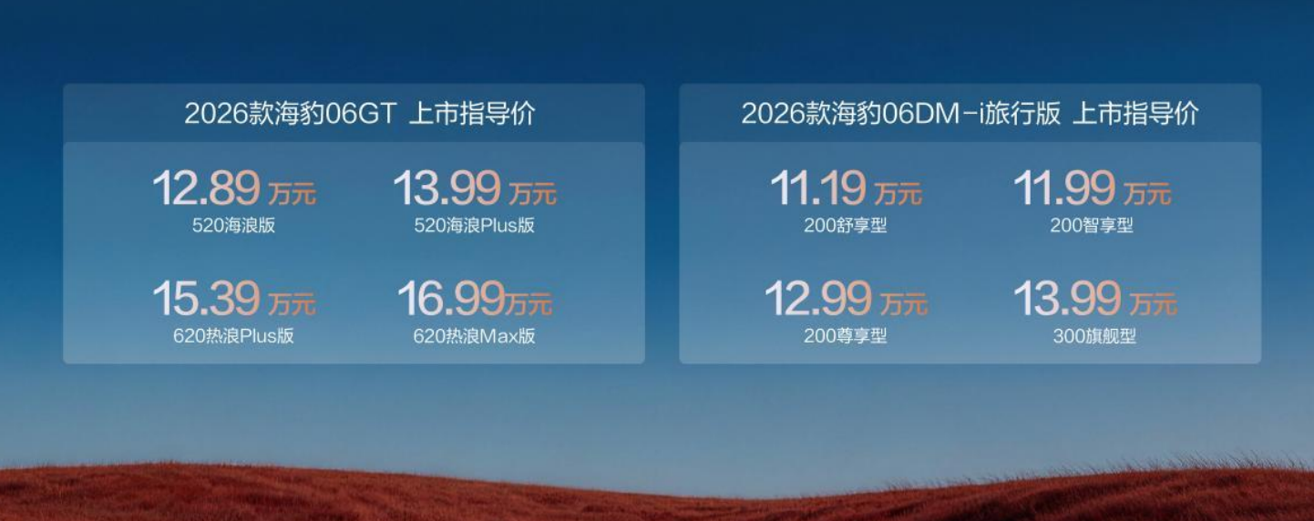 作为比亚迪海洋网聚焦年轻主流消费群体打造的战略车型,2026款海豹06GT与2026款海豹06DM-i旅行版以纯电性能钢炮+插混休旅标杆的双车矩阵,精准覆盖个性通勤、家庭出行、长途自驾、城市玩乐等全场景需求,凭借越级产品力、全系高配与亲民定价,重塑10—17万元级新能源汽车市场格局。