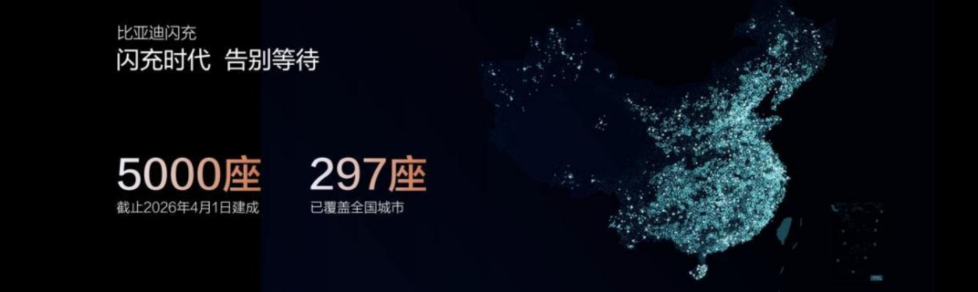 本次品鉴会同步重磅发布比亚迪闪充中国战略落地成果。截至2026年4月1日,比亚迪已建成5000座闪充站,覆盖全国297座城市;闪充APP注册用户突破70万;“圆梦建站计划”高效推进,累计收到超3.8万份用户建站申请,已为超2300位用户圆梦,建成164座用户专属闪充站。2026年底,比亚迪闪充站将建成20000座,构建覆盖全国的极速补能网络。