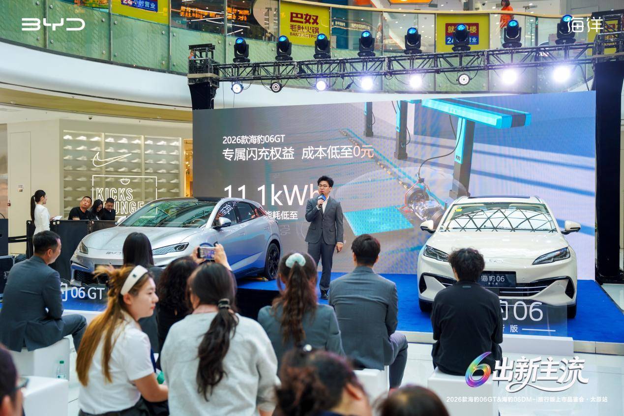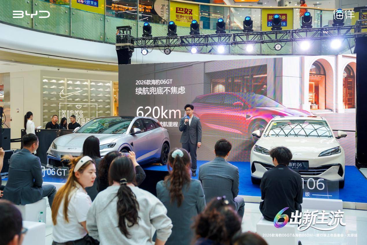 近日,以6出新主流为主题的2026款海豹06GT与2026款海豹06DM-i旅行版上市品鉴会在太原隆重举办。比亚迪海洋网陕甘宁战区领导、山西区域经销商代表、省市主流媒体嘉宾及核心用户代表齐聚现场,共鉴比亚迪海洋网双重磅新车的硬核实力,共启太原新能源出行品质升级新篇章。