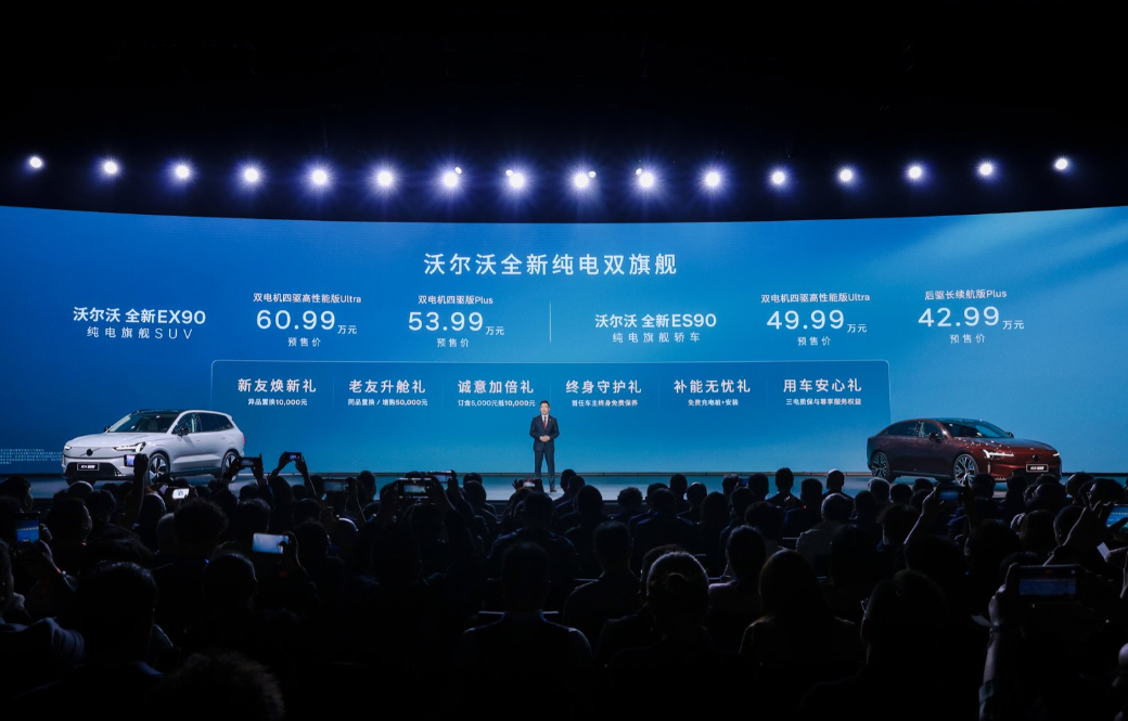 三款新车同步登场,构成沃尔沃当下最完整也最具战略纵深的产品矩阵:纯电旗舰双雄EX90(SUV)与ES90(轿车)正式开启预售;同时发布全新XC70 99周年感恩版Core/Plus,以24.99万/26.99万元的诚意价格锚定25万级豪华插混SUV价值新基准。三车分别承载三大技术路径的集大成——SPA2原生纯电架构、SMA超级混动架构、以及面向家庭全场景的用户思维落地。