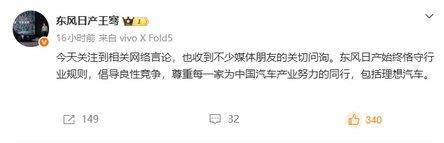 后续的事大家也都知道了,面对理想汽车的指控,东风日产新能源品牌总经理王骞于4月11日晚间通过官方认证微博作出回应:“东风日产始终恪守行业规则、倡导良性竞争,尊重每一家为中国汽车产业努力的同行,包括理想汽车。”