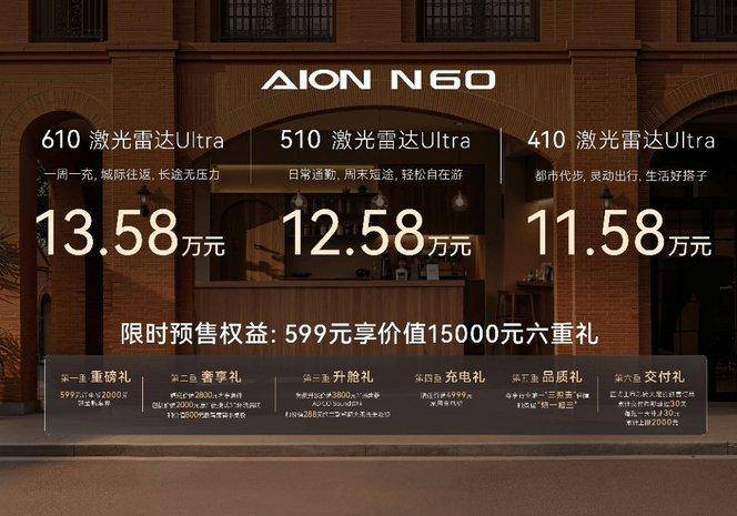 【车媒体丨新车】4月16日,长沙梅溪湖艺术博物院,埃安以一场新能源汽车时尚大秀,正式发布全新品牌理念“Easy Life”, 并宣布全新重磅车型——智美都市SUV埃安N60,面向年轻人,没有复杂的选配清单与套路,而是以 “全系标配激光雷达辅助驾驶、全系标配副驾零重力座椅、全系标配豪车级五连杆、全系标配非晶碳纤维电机”等超20项全系标配的诚意,正式开启预售,预售价11.58万元起,并同步推出了价值15000元的预售权益,重新定义了15万内纯电SUV价值标准。