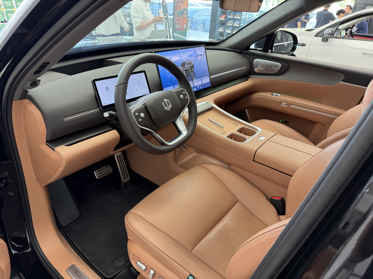 内饰值得看的:第一,前排只有一个屏,但是顶配三代机车型是双8297芯片的,算力可以达到1280TOPS,不过这个顶配多了2万,不仅仅多了芯片,还多了一个电机加速快,不过这个配置我个人感觉如果是增程还可以考虑,但是它是纯电680公里续航,心里多少是有点顾虑的,只适合一部分追求科技感的人!