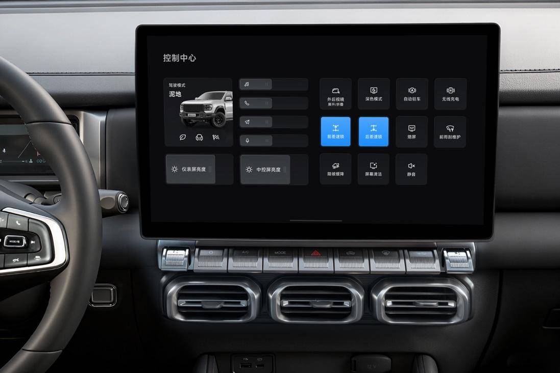动力层面,威麟 R08 PRO 直接搭载 2.3T 柴油发动机 + 采埃孚 8AT 变速箱的黄金组合,1500rpm 即可输出 420N・m 峰值扭矩,低速高扭的特性让重载、爬坡、越野脱困毫无压力。更难得的是,该车全系标配博格华纳分时四驱、前后差速器锁,搭配 9 种全地形驾驶模式、蠕行模式与坦克掉头功能,再加上 34° 接近角、230mm 最小离地间隙,硬件规格直接看齐更高价位的专业越野车型,让普通用户无需改装,即可轻松应对沙漠、泥地、陡坡等复杂路况。