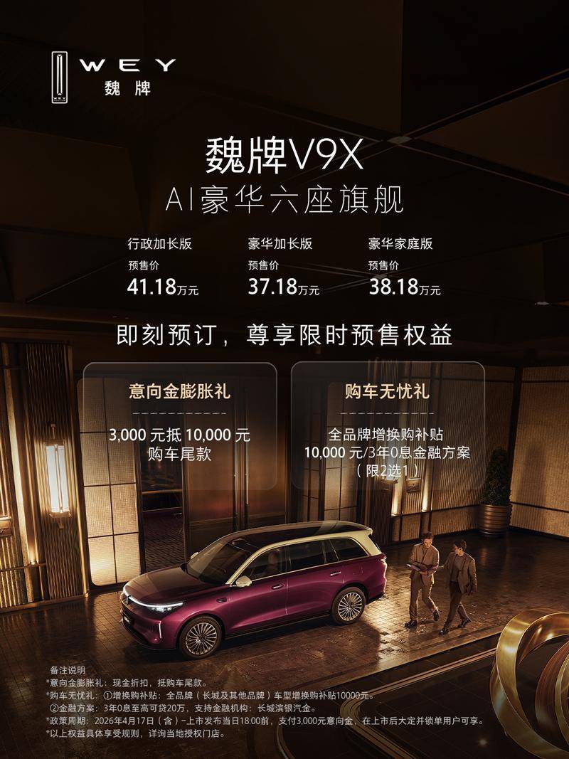 随着魏牌V9X的正式预售,长城汽车也为广大消费者准备了多重预售权益。即日起,消费者可通过官方渠道预订魏牌V9X,享受意向金膨胀礼、购车无忧礼等多重优惠。无论是增换购补贴还是金融政策,都能让消费者在购车过程中享受到更多的实惠和便利。