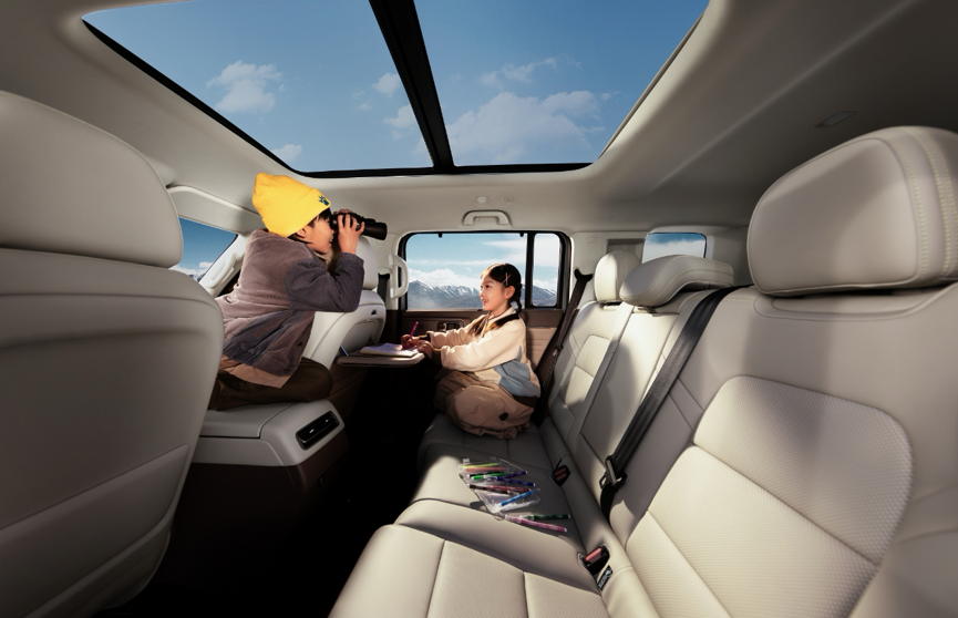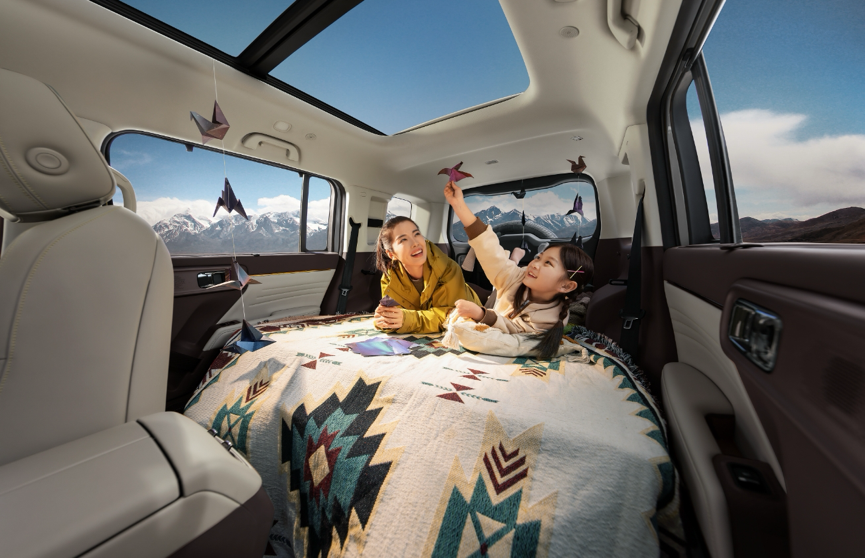 超过70%的高得房率,前后不拥挤、左右无触碰。全车45处储物空间,后备箱最大容积达1691L。从露营装备到旅行行李,各就其位。车内铺床休憩或装载大型户外装备,灵活多变的空间适配露营、自驾、城市通勤等多元场景。