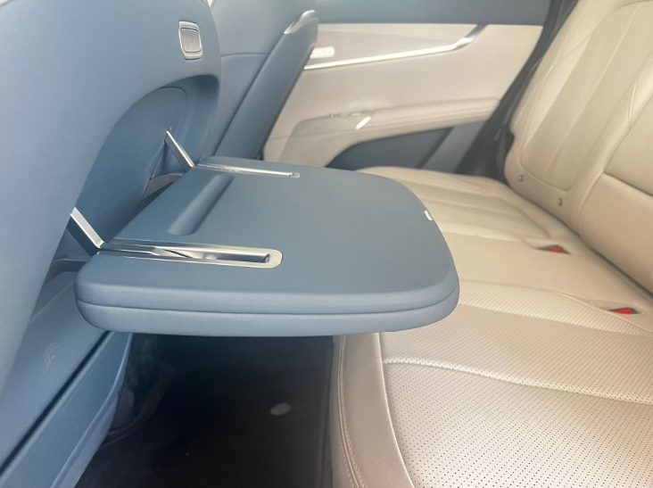 座椅方面,全车采用了SPA级云感座椅设计,填充物偏软但有一定支撑性。前排主副驾均提供通风、加热和按摩功能,副驾为零重力女王座椅,可通过按键或屏幕一键放倒到半躺姿态。后排座椅同样带有加热和按摩功能,这在同价位中不多见,且靠背角度可调。主驾座椅后背设有小桌板,提升了实用性。
