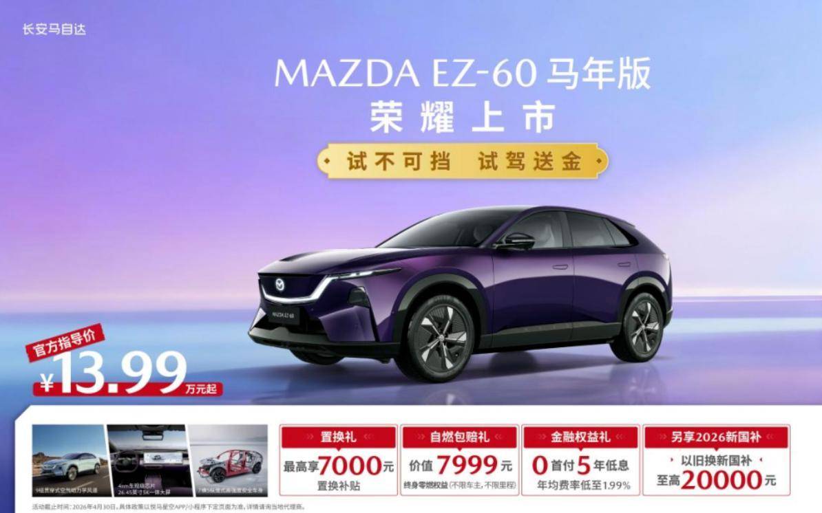今日(4月21日),长安马自达EZ-60马年版正式上市,共推出增程200马年版、纯电600马年版两款配置,售价13.99-14.59万元。与此同时,全系车型还可以叠加至高23000元专属购车权益,这波诚意可以说相当到位。