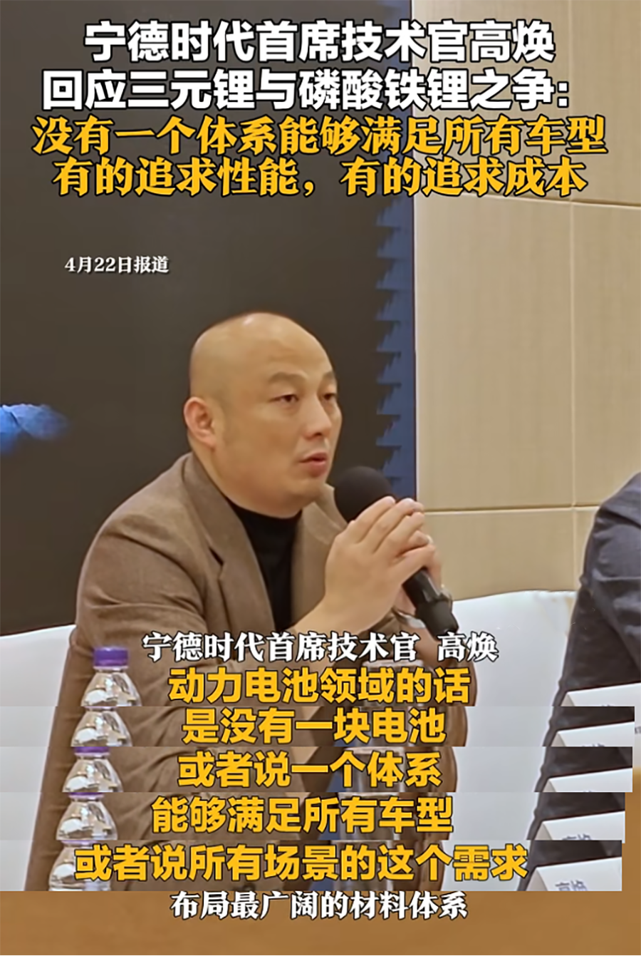 媒体纷纷报道宁德时代CTO在一场产品发布会上的观点,这一观点可以说是非常犀利;因为依然有少数知名品牌的高端车在使用磷酸铁锂电池,评论的针对性相当强,同时磷酸铁锂电池和三元锂电池的争论也一直在进行中,宁德时代方面很少回应但此次回应非常有分量。
