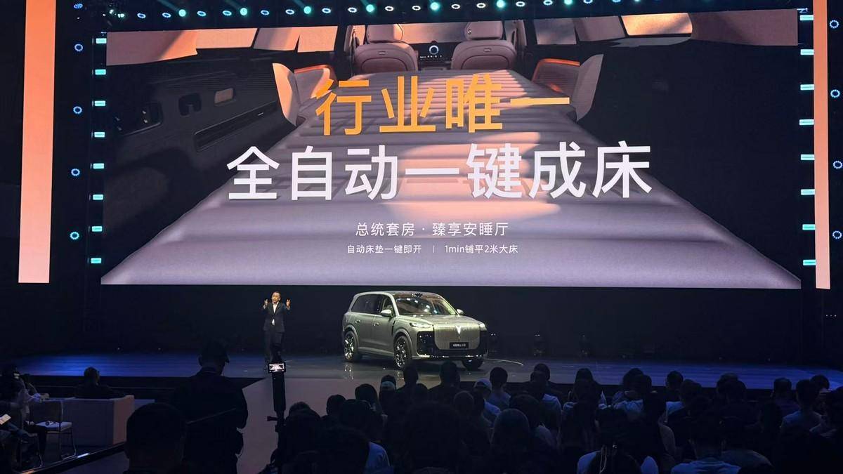大四座模式更绝:中央扶手放下来,21.4英寸3K吸顶屏、29扬声器殿堂音响、13L冷暖箱全联动,车里秒变私人影院。SPA馆+影院+衣帽间,这套组合拳打得有点狠。
