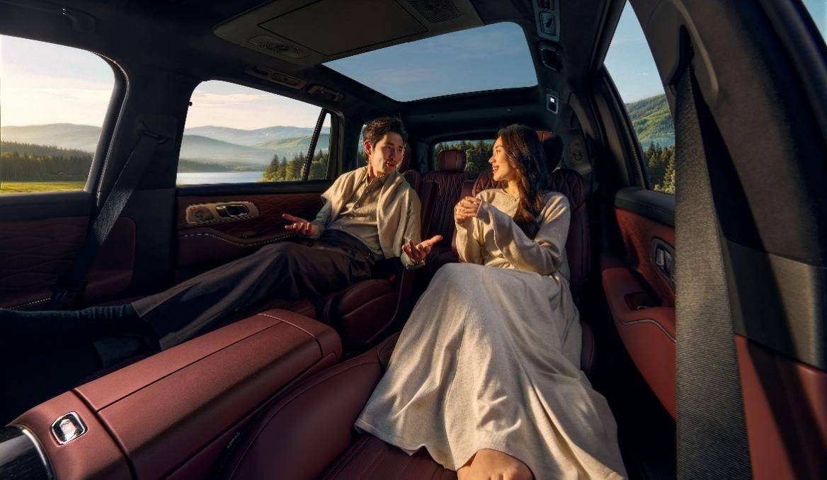 空间表现延续了银河M9「三进大宅」的优势,作为一款大六座SUV,它的第三排在同级别里表现不错,身高185cm的我在乘坐时,头部和腿部都不算受憋屈。二三排纯平地板是一大亮点,中间没有凸起,后排乘客的腿部活动更自由;二排0门槛设计,方便老人和小孩上下车,再加上「一键八调」的百变空间功能,可根据日常需求灵活调节座椅布局,不管是通勤、全家出行,还是装载大件物品都没毛病。