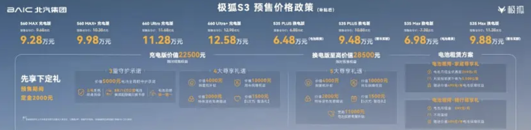 车展现场,极狐还同步放出了限时预售福利:充电版可享价值22500元的专属权益,换电版更是给到了至高28500元的预售礼遇,同时联合宁德时代推出了专属电池租赁方案,进一步拉低了普通家庭的购车门槛,现在下订就能锁定全部福利,不用漫长等待,直接告别充电排队、续航焦虑的用车痛点。