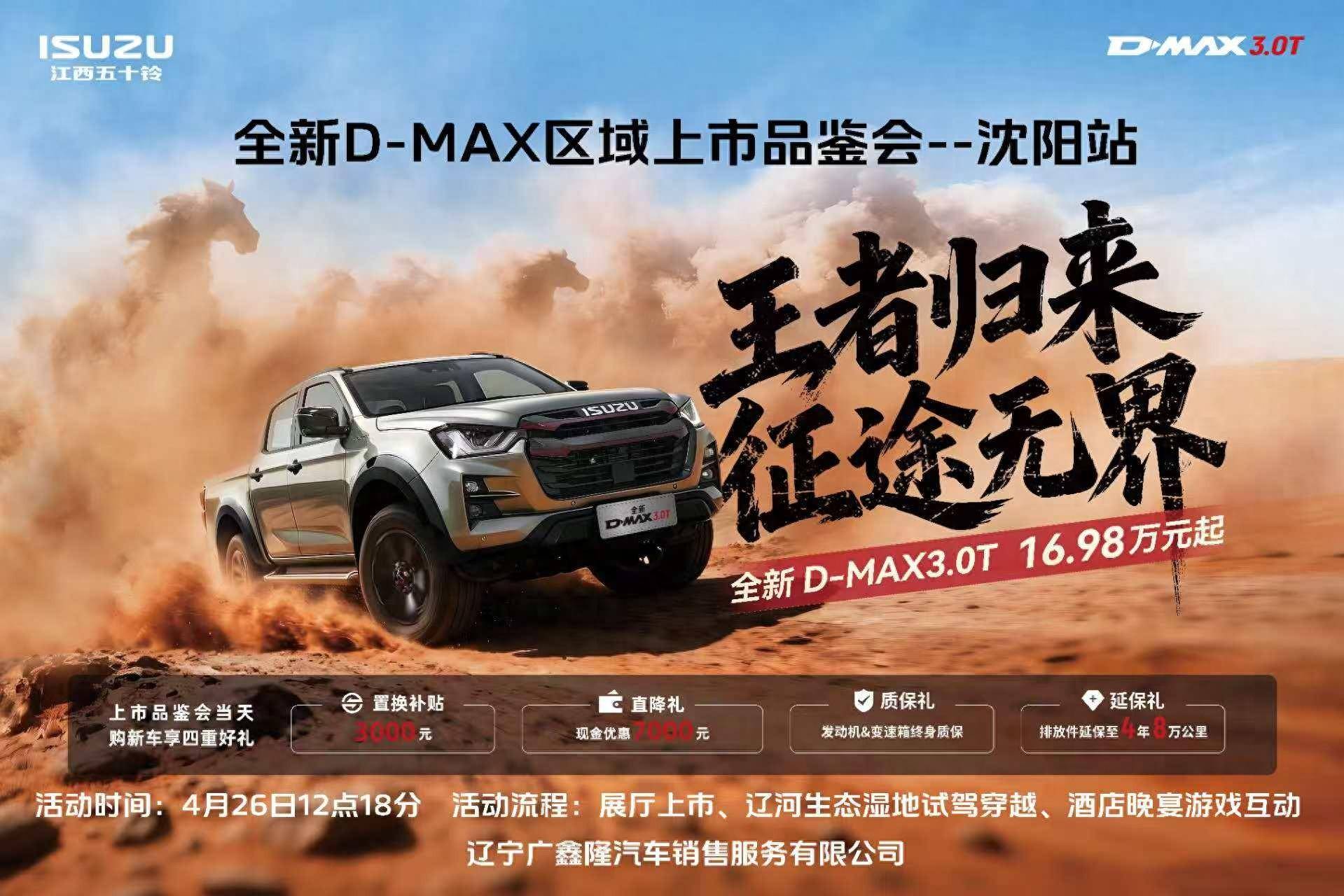沈阳的皮卡老炮、越野玩家、实干先锋们注意了!柴油机皇回归,全域硬核旗舰驾到——江西五十铃全新D-MAX 3.0区域上市品鉴会·沈阳站,即将燃情启幕,诚邀全城共鉴传奇!