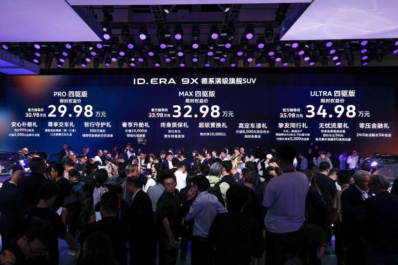 当行业还在热议合资品牌在新能源高端赛道的 “失语”,当自主与新势力早已把 30 万级市场卷成红海,4 月 25 日,大众汽车全球首款 9 系旗舰、上汽大众全新新能源序列 ID. ERA 的开山之作 ——ID. ERA 9X 正式官宣上市。新车共推出 Pro、Max、Ultra 三款四驱版车型,官方指导价 30.98 万元 - 35.98 万元,全系标配核心旗舰配置,瞬间点燃了展馆现场。更让行业震动的是,这款德系旗舰上市仅 1 小时,锁单量便突破 11079 台,预售开启至今订单持续破万,用一份无可争议的市场成绩单,打响了合资品牌新能源反攻的最强一枪。