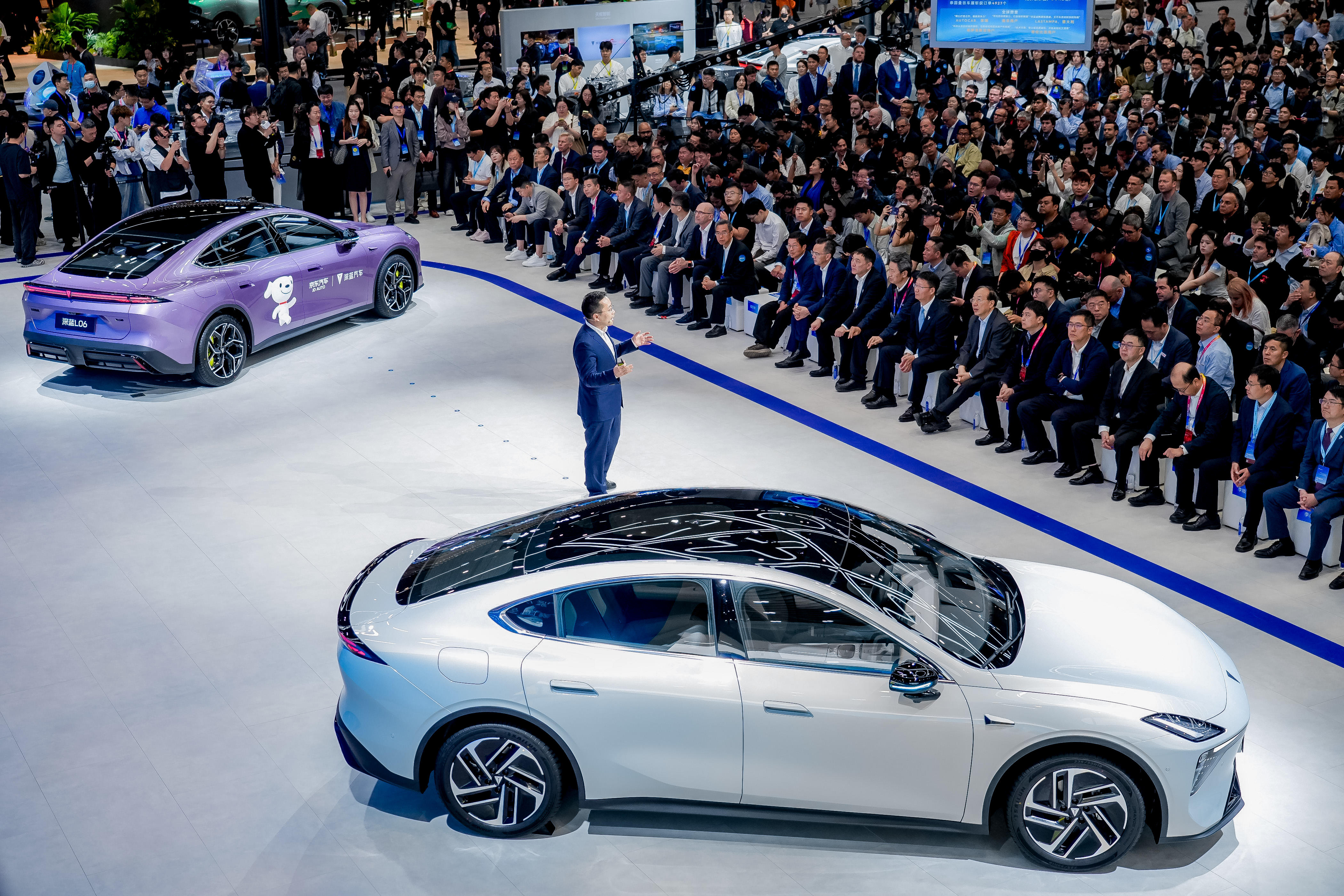 北京车展上,深蓝汽车展台重磅集结全系6款明星车型,展现品牌规模化、体系化的造车实力。