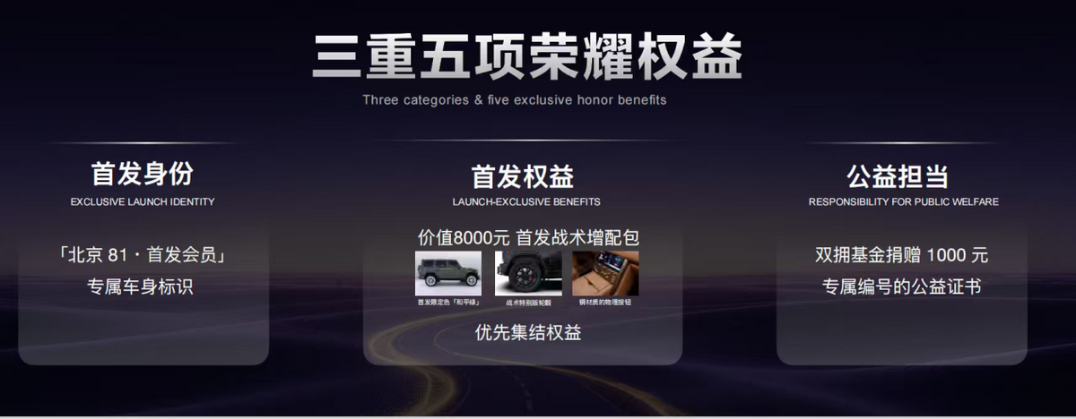 针对 BIP 共创阶段就下订单的盲订用户,北京 81 量身打造三重五项专属荣耀权益,回馈早期信任与支持: