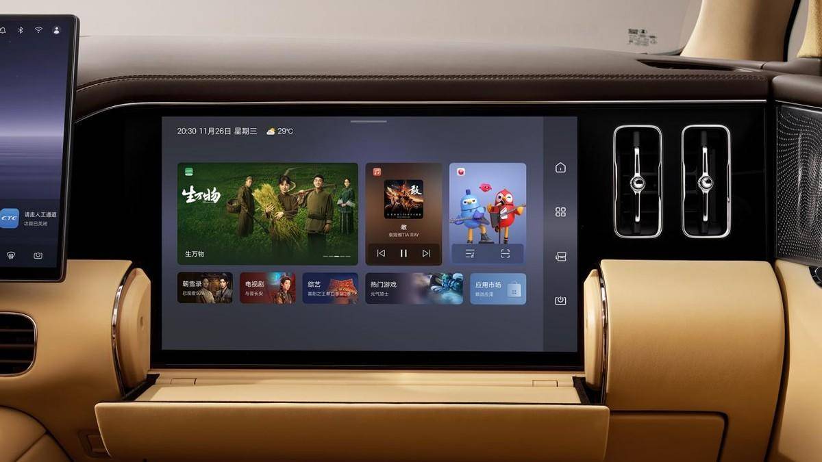 座舱方面则是在豪华感和配置方面做了大幅的升级,中控台、门板扶手等高频接触面100%真皮包覆,还有水墨云杉真木饰板这种非常中式豪华的设计。首创的副驾开合屏是一个巧思,算是给现在千篇一律的副驾屏设计带来一丝新意。二排的半苯胺真皮云绒座椅,号称是直接对标劳斯莱斯的,拥有15层座椅结构。